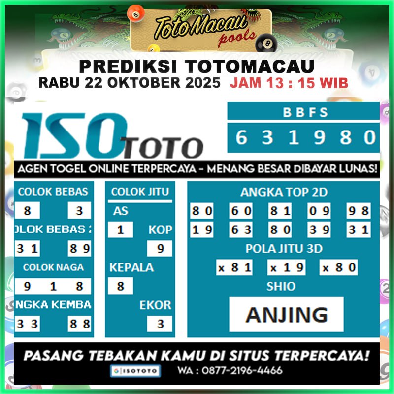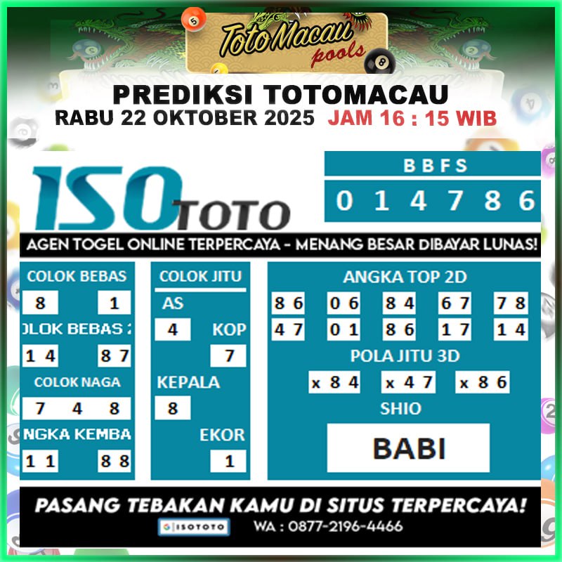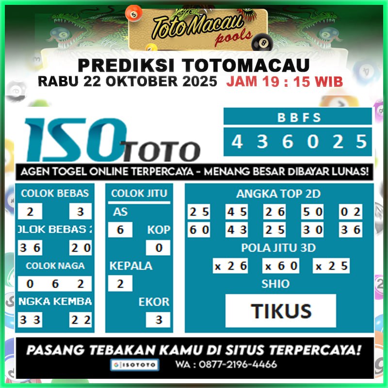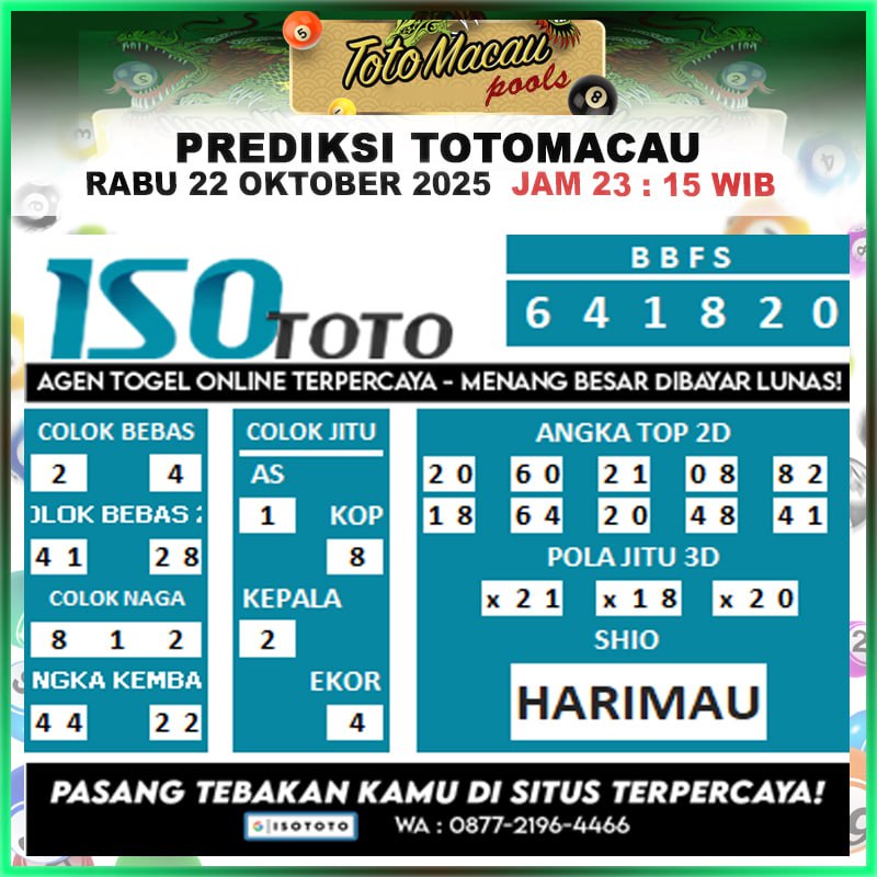 Prediksi Totomacau Hari Ini | Bocoran Macau 22 Oktober 2025